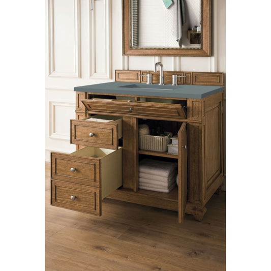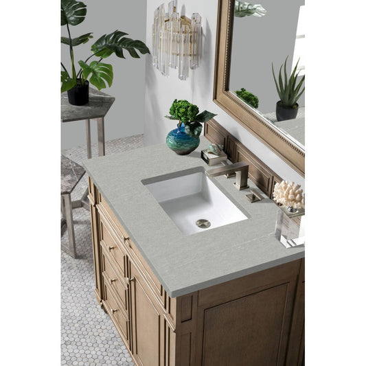 Bristol 36" Single Vanity, Whitewashed Walnut, w/ 3 CM Gray Expo Quartz Top