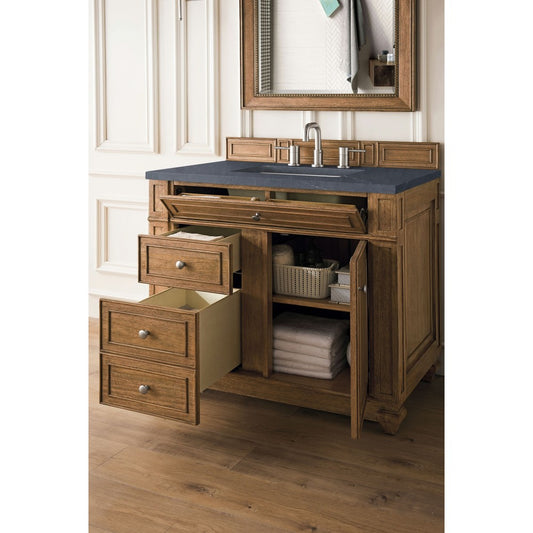 Bristol 36" Single Vanity, Saddle Brown, w/ 3 CM Charcoal Soapstone Quartz Top