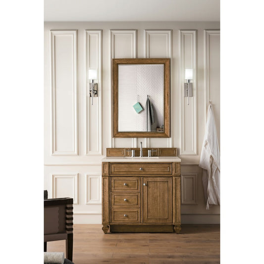 Bristol 36" Single Vanity, Whitewashed Walnut, w/ 3 CM Eternal Marfil Quartz Top