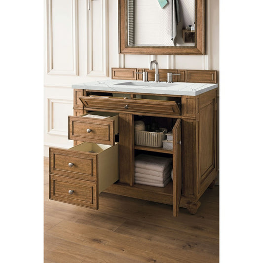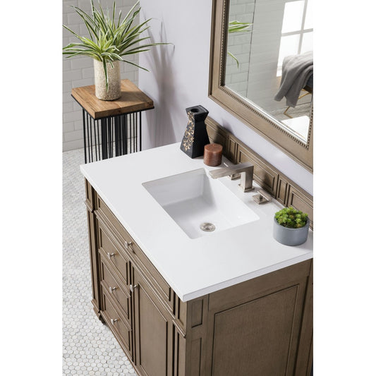 Bristol 36" Single Vanity, Whitewashed Walnut, w/ 3 CM Eternal Serena Quartz Top