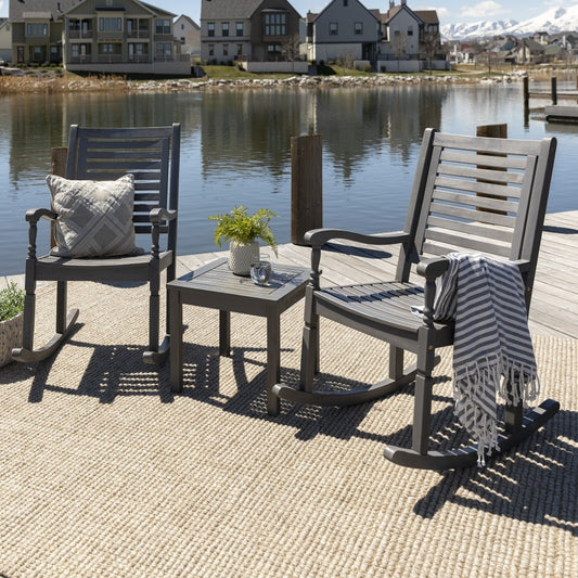 Rocking Chair Outdoor Chat Set with Slatted Square Side Table - Gray Wash