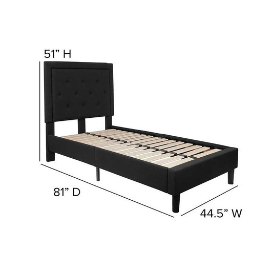 Roxbury Twin Size Tufted Upholstered Platform Bed in Black Fabric