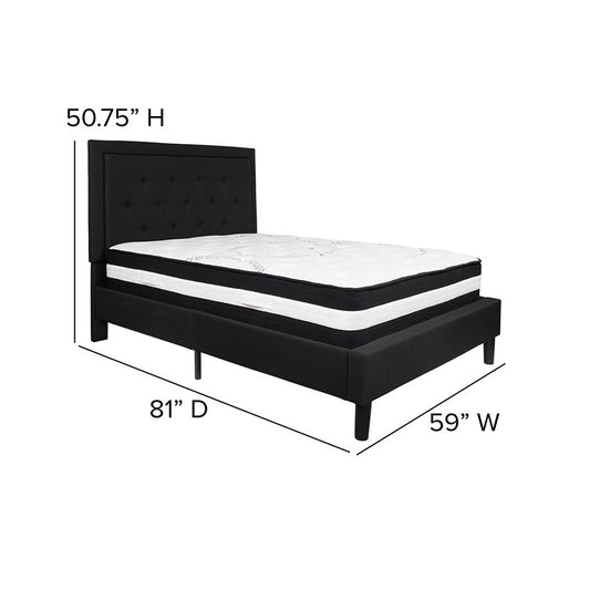 Roxbury Full Size Tufted Upholstered Platform Bed in Black Fabric with Pocket Spring Mattress