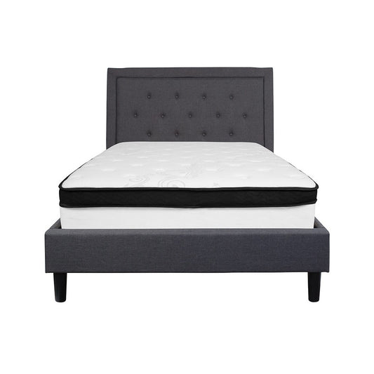 Roxbury Full Size Tufted Upholstered Platform Bed in Dark Gray Fabric with Memory Foam Mattress