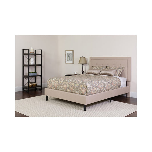 Roxbury Full Size Tufted Upholstered Platform Bed in Beige Fabric
