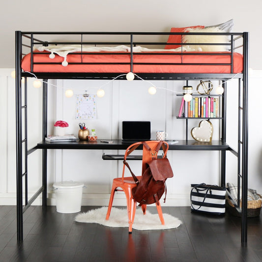 Premium Metal Full Size Loft Bed with Wood Workstation - Black