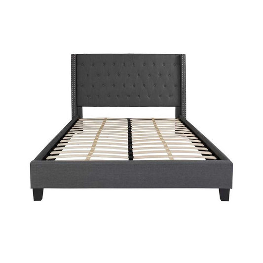 Riverdale Queen Size Tufted Upholstered Platform Bed in Dark Gray Fabric
