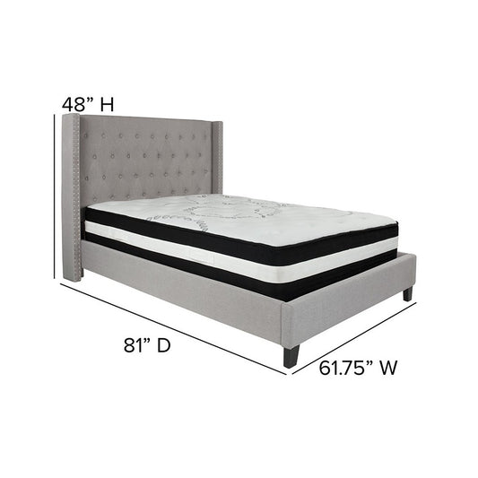 Riverdale Full Size Tufted Upholstered Platform Bed in Light Gray Fabric with Pocket Spring Mattress