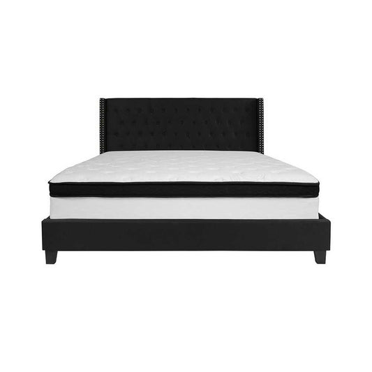 Riverdale King Size Tufted Upholstered Platform Bed in Black Fabric with Pocket Spring Mattress