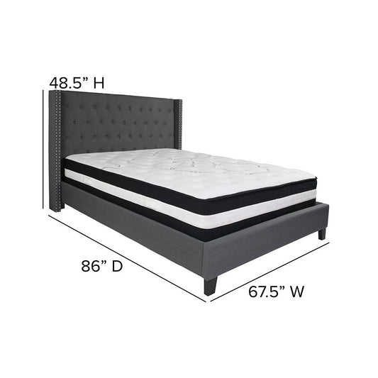 Riverdale Full Size Tufted Upholstered Platform Bed in Dark Gray Fabric with Pocket Spring Mattress