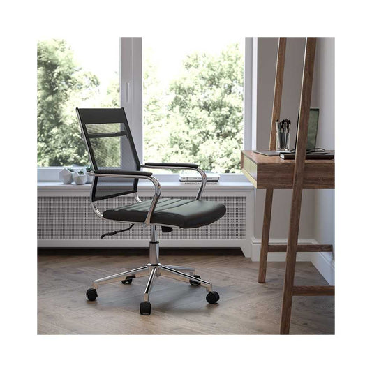 Mid-Back Black Mesh Contemporary Executive Swivel Office Chair with LeatherSoft Seat