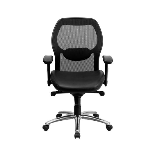 Mid-Back Black Super Mesh Executive Swivel Office Chair with LeatherSoft Seat, Knee Tilt Control and Adjustable Lumbar & Arms