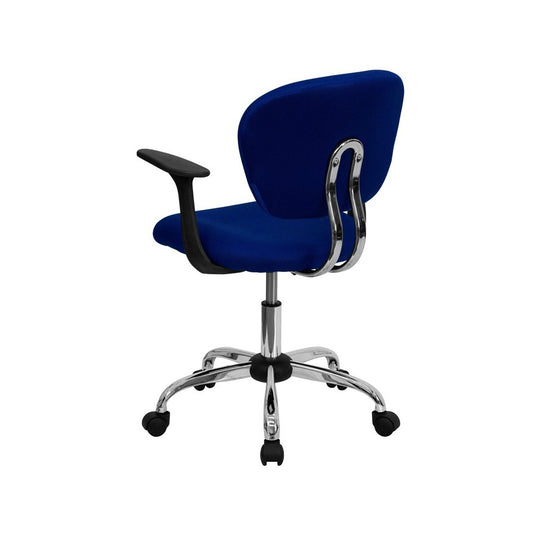 Mid-Back Blue Mesh Padded Swivel Task Office Chair with Chrome Base and Arms