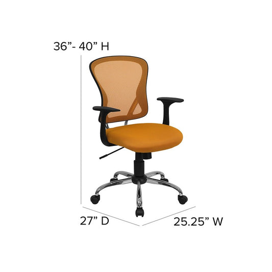 Mid-Back Orange Mesh Swivel Task Office Chair with Chrome Base and Arms
