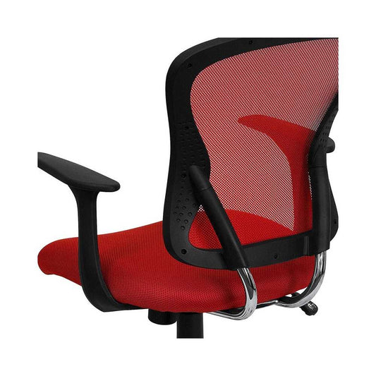 Mid-Back Red Mesh Swivel Task Office Chair with Chrome Base and Arms