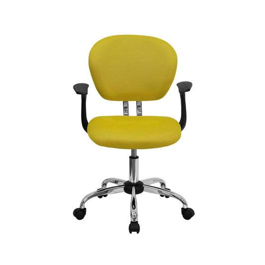 Mid-Back Yellow Mesh Padded Swivel Task Office Chair with Chrome Base and Arms