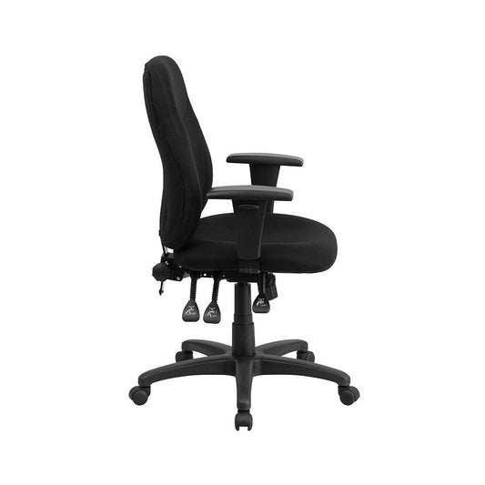 Mid-Back Black Fabric Multifunction Swivel Ergonomic Task Office Chair with Adjustable Arms
