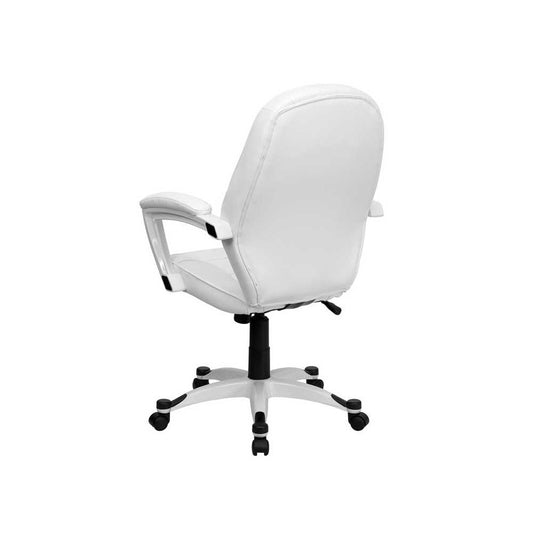 Mid-Back White LeatherSoft Tapered Back Executive Swivel Office Chair with White Base and Arms