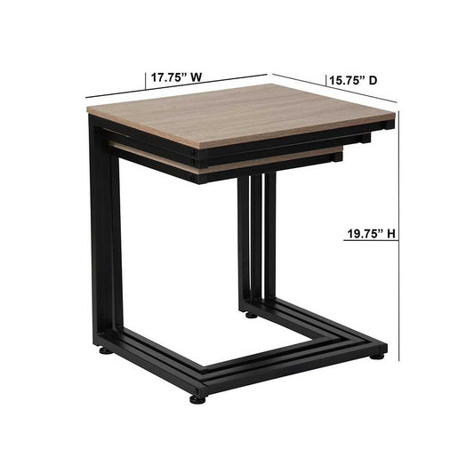 Midtown Collection Sonoma Oak Wood Grain Finish Nesting Tables with Black Metal Cantilever Base