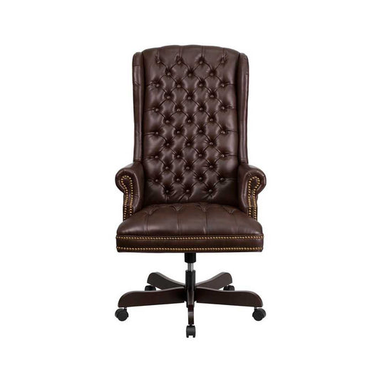 High Back Traditional Tufted Brown LeatherSoft Executive Ergonomic Office Chair with Oversized Headrest & Nail Trim Arms