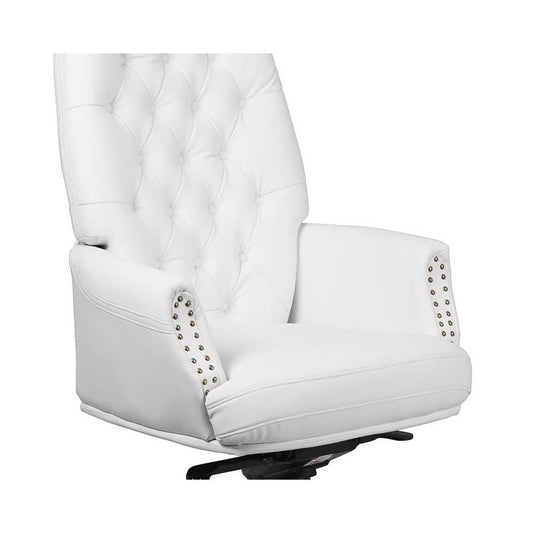 High Back Traditional Tufted White LeatherSoft Multifunction Executive Swivel Ergonomic Office Chair with Arms
