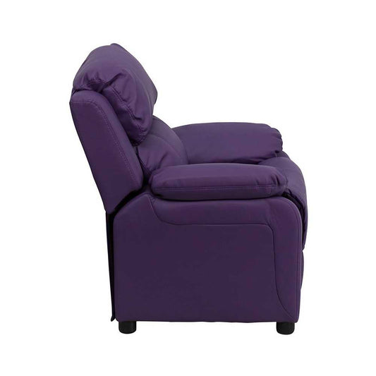 Deluxe Padded Contemporary Purple Vinyl Kids Recliner with Storage Arms