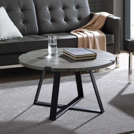 Faux Wrap Leg Urban Industrial Round Coffee Table - Slate Gray/Black