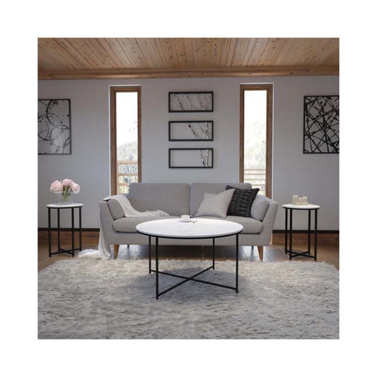 Flash Furniture 3 Piece White Coffee Table Set NAN-CEK-1787-BK-GG