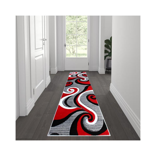Flash Furniture Athos Collection 2x7 Red Abstract Rug KP-RG952-27-RD-GG