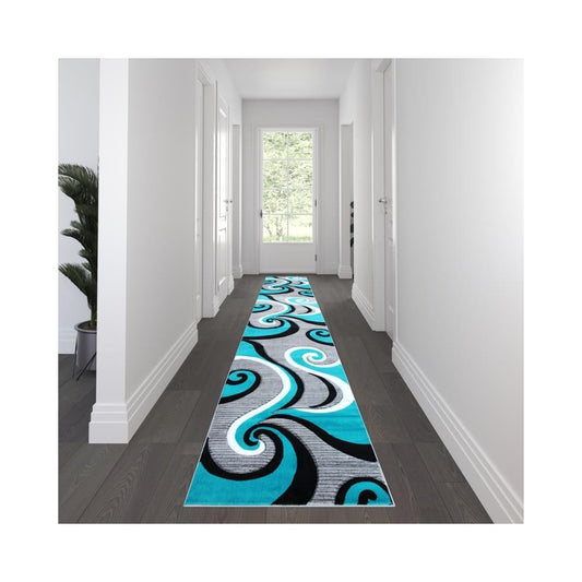Flash Furniture Athos Collection 3x16 Turquoise Abstract Rug KP-RG952-316-TQ-GG