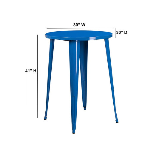 Commercial Grade 30" Round Blue Metal Indoor-Outdoor Bar Height Table