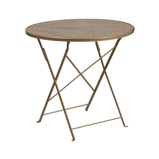 Commercial Grade 30" Round Gold Indoor-Outdoor Steel Folding Patio Table