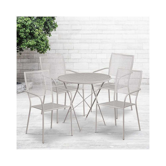 Commercial Grade 30" Round Light Gray Indoor-Outdoor Steel Folding Patio Table Set with 4 Square Back Chairs