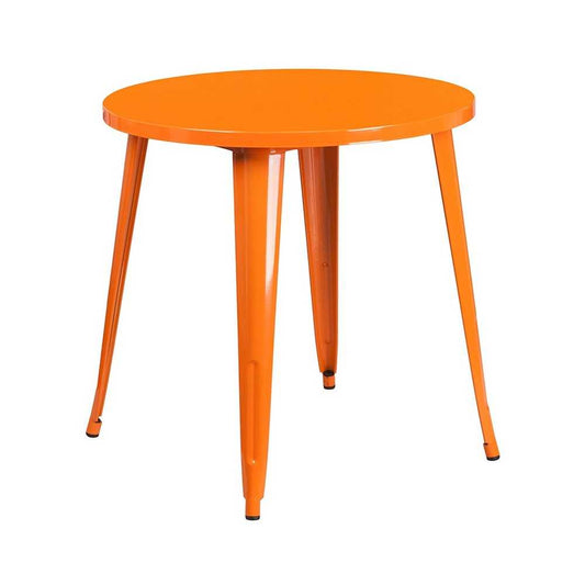 Commercial Grade 30" Round Orange Metal Indoor-Outdoor Bar Table Set with 4 Cafe Stools
