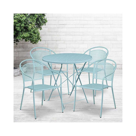 Commercial Grade 30" Round Sky Blue Indoor-Outdoor Steel Folding Patio Table Set with 4 Round Back Chairs
