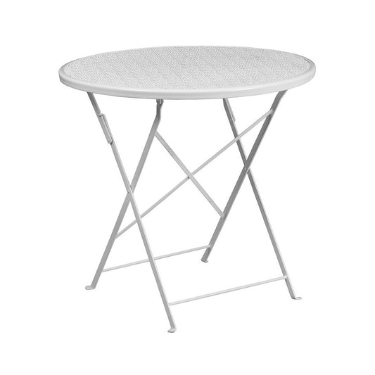 Commercial Grade 30" Round White Indoor-Outdoor Steel Folding Patio Table Set with 2 Square Back Chairs