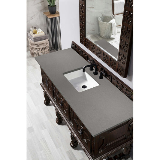 Balmoral 60" Single Vanity Cabinet, Antique Walnut, w/ 3 CM Gray Expo Quartz Top