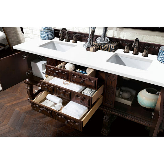 Balmoral 72" Double Vanity, Antique Walnut, w/ 3 CM Classic White Quartz Top