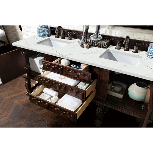 Balmoral 72" Double Vanity, Antique Walnut, w/ 3 CM Eternal Serena Quartz Top