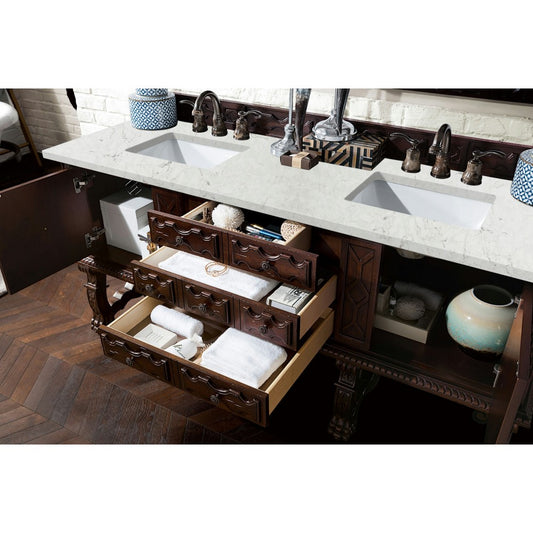 Balmoral 72" Double Vanity, Antique Walnut, w/ 3 CM Eternal Marfil Quartz Top