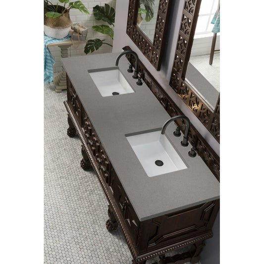 Balmoral 72" Double Vanity Cabinet, Antique Walnut, w/ 3 CM Gray Expo Quartz Top