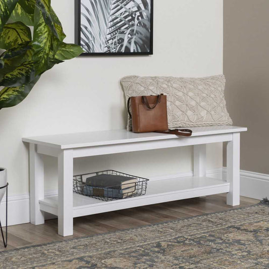 50'' Farmhouse Entryway Bench with Grooved Shelf - White