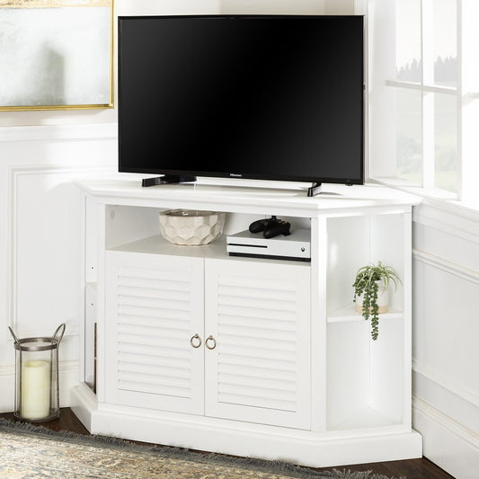 52" Transitional Fluted 2 Door Wood Corner TV Stand - White