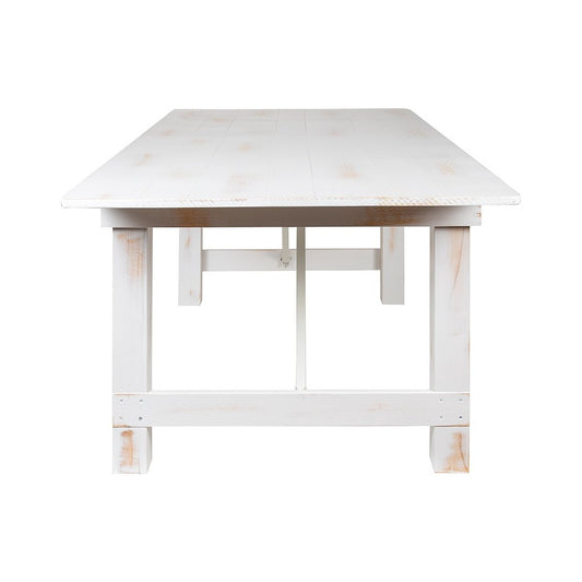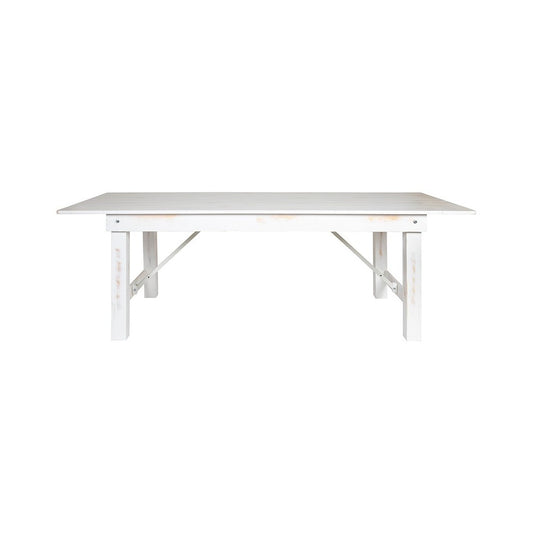 8' x 40" Rectangular Antique Rustic White Solid Pine Folding Farm Table