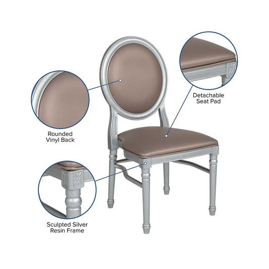 900 lb. Capacity King Louis Chair with Taupe Vinyl Back and Seat and Silver Frame