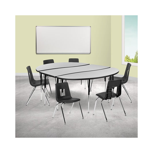 86" Oval Wave Collaborative Laminate Activity Table Set with 18" Student Stack Chairs, Gray/Black