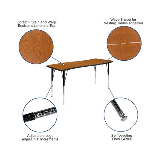 86" Oval Wave Collaborative Laminate Activity Table Set with 18" Student Stack Chairs, Oak/Black