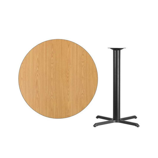 42'' Round Natural Laminate Table Top with 33'' x 33'' Bar Height Table Base