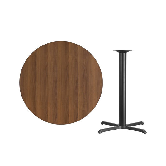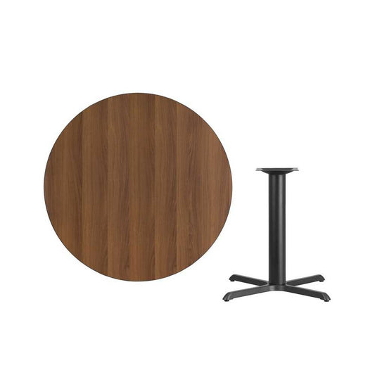 42'' Round Walnut Laminate Table Top with 33'' x 33'' Table Height Base