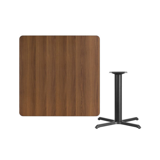 42'' Square Walnut Laminate Table Top with 33'' x 33'' Table Height Base